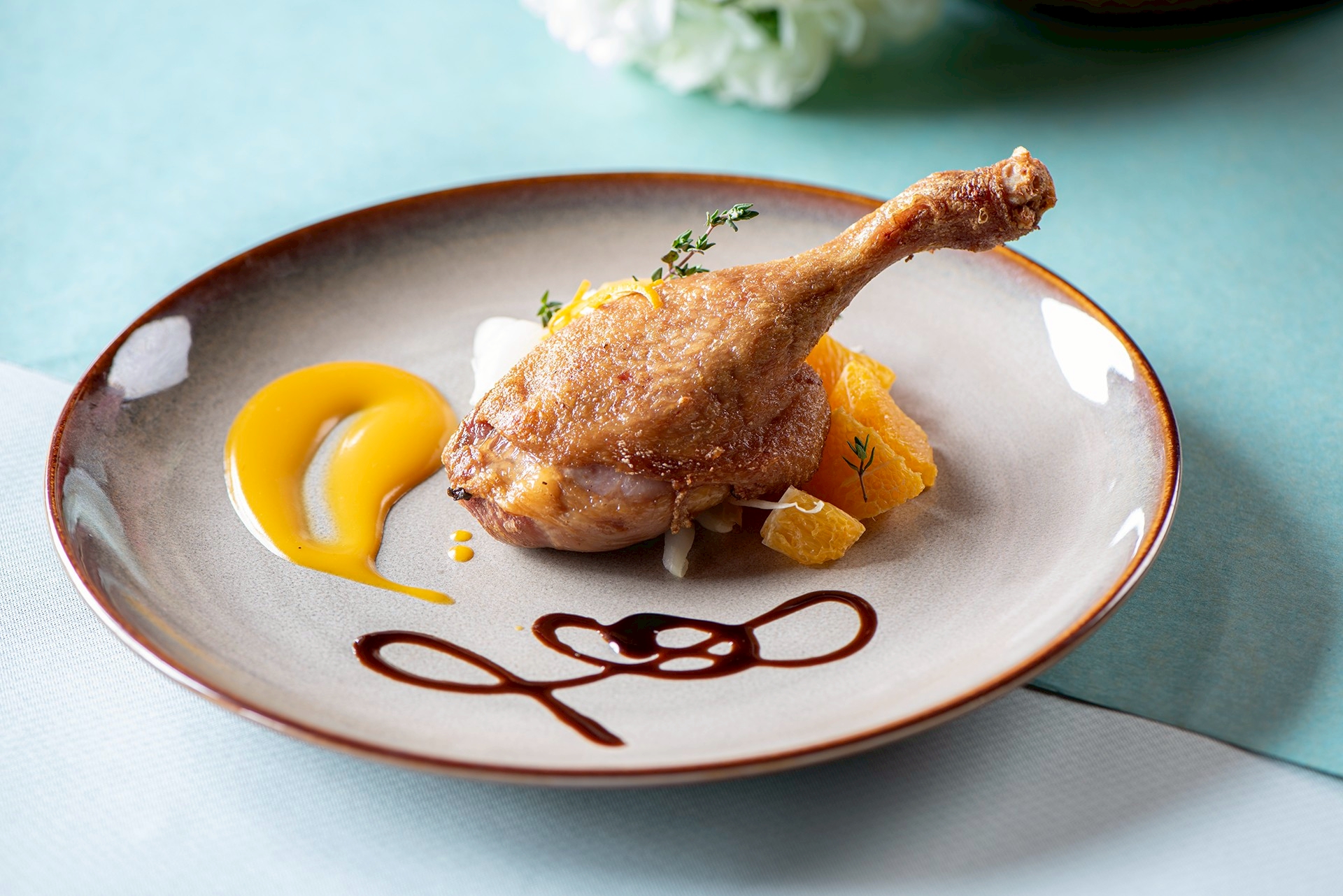 風味濃郁的挪威捲心菜燉羊膝、香酥馥郁的香橙風味油封鴨,
