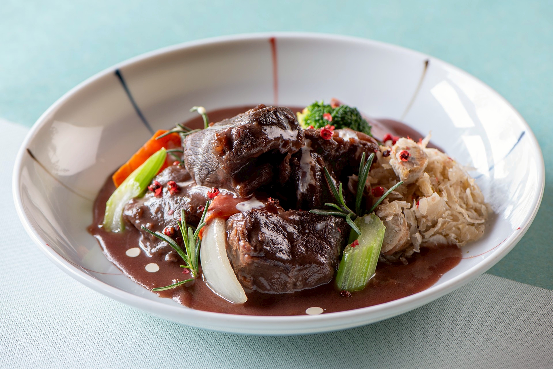 本季菜單中可見多道歐陸經典菜色,包括鑄鐵鍋慢燉而成的阿爾薩斯燉牛肉頰、